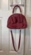 Like Dreams Bea Red Burgundy 3D Double Bow Faux Leather Crossbody Handbag. Mid-size with short braided top handles with gold hardware. Long, detachable chain crossbody strap can be removed. Zipper closure opens all the way around. Interior has 2 slip pockets and one zippered. Pebbled texture. Iconic signature double bowtie ornament embellishment on front.