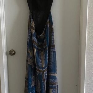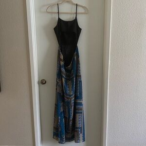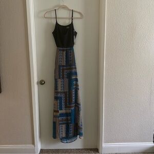 Like Mynded Blue Geometric Women's Partially Backless Maxi Dress Size S NWT