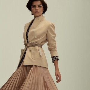 Like NEW Anne Klein perfectly polished latte tan faux double breasted scuba suede jacket blazer