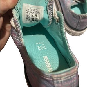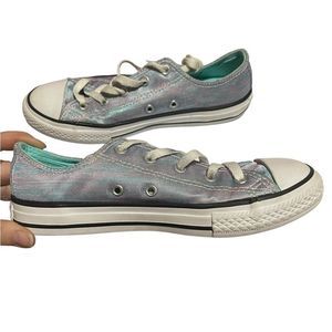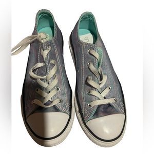 Like NEW - Converse blue & pink iridescent low tops. Big Kids Size 3.