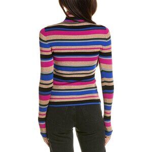 Like NEW L’Agence Olene Metallic Stripe Turtleneck Top, Size Small / Petite. Color is Magenta Multi Stripe (Pink Gold Blue Black). This vibrant turtleneck is crafted with allover ribbing and shimmering metallic stripes. Turtleneck. Long sleeves. In perfect condition!