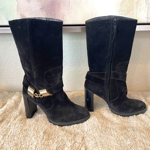 Like NEW Stuart Weitzman Slouchy Suede Black Tread Heeled Boots 37 1/2 size 7US