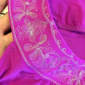 FUSHIA color, flowy tank! 94% polyester 6% spandex. Shiny detail at top! Very cute on