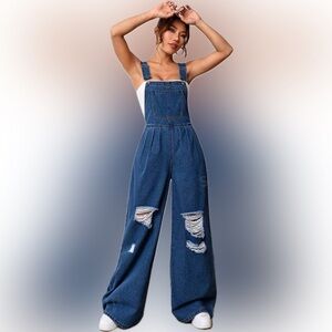 Like NEW Wide Leg Denim flare, TALL girl friendly Overalls Sz medium