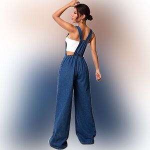 New, wore for 5 min !! super cute medium wash overalls sz Medium. Lightweight and high rise with tons of stretch. Nice large flare leg.