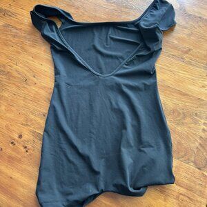 Like NEW Women's Sexy Square Neck Backless Short Sleeve Unitard Black Sz M