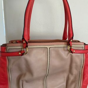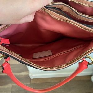 Mint condition. Large coach bag with 4 sections (2 zippered and 2 snap closures), 2 cell phone inner pockets and inner zipper pocket.