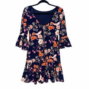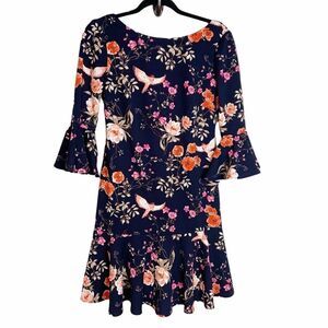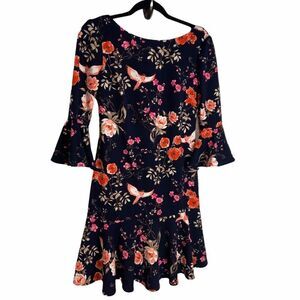 Like NEW Eliza J Floral Bird flare Sleeve Mini Dress Size 6