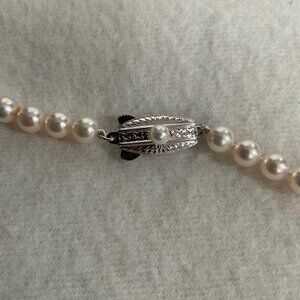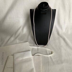 like new Mikimoto 5.5-6mm long AKOYA Pearls Necklace w/ cute pink travel case