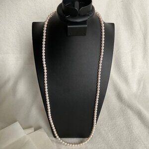 Like NU Mikimoto 5.5-6mm long AKOYA Pearls Necklace w/ cute pink travel case