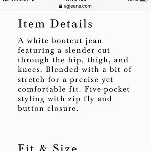 AG the Ballad Slim Boot White Jeans size 25R. Excellent condition. Worn only once for not long, as they are too big on me. Perfect condition except one tiny mark on the front that could probably be cleaned, see photo. It is barely noticeable.