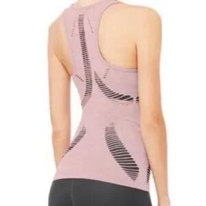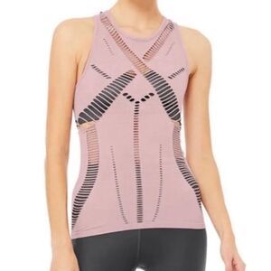 Like New ALO Yoga Vixen Laser Cut Distressed Fitted Workout Tank Top, Small