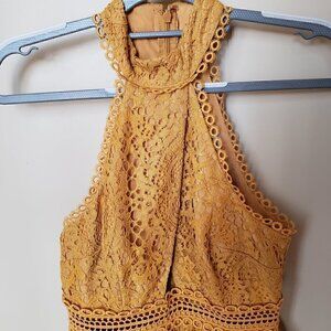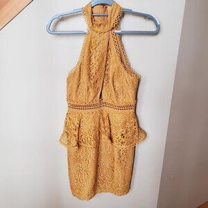 Like New ASOS Mustard Yellow Lace High Neck Peplum Cocktail Dress Size 4