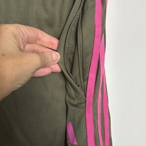 Like New Adidas Men’s 3 Stripe Shorts army green w hot pink size L