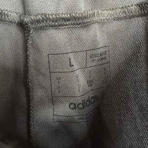 Elastic waist with inner drawstring, 8 inch inseam, waist measures 15 1/2 inches flat across without any stretching, zipper front side pockets AEROREADY fabric lightweight like new without tag perfect condition