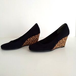 Like New! Aerosoles Black Suede Leopard Print Wedge Heels