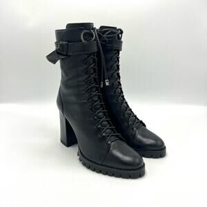 Like New Alexandre Birman Black Evelyn Boot Lace-up High Heel Waterproof Size 36
