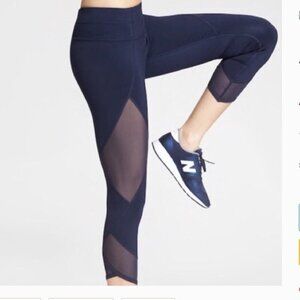 Like New! Athleta black tights with gray pattern and blocks of sheer mesh (see photos). Size extra small XS. These are like new with no flaws. Great for running, working out, yoga, etc. great leggings.