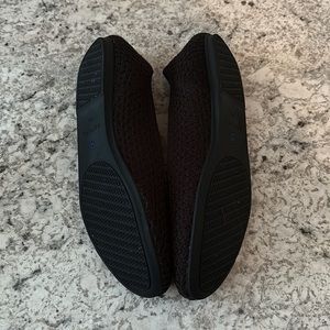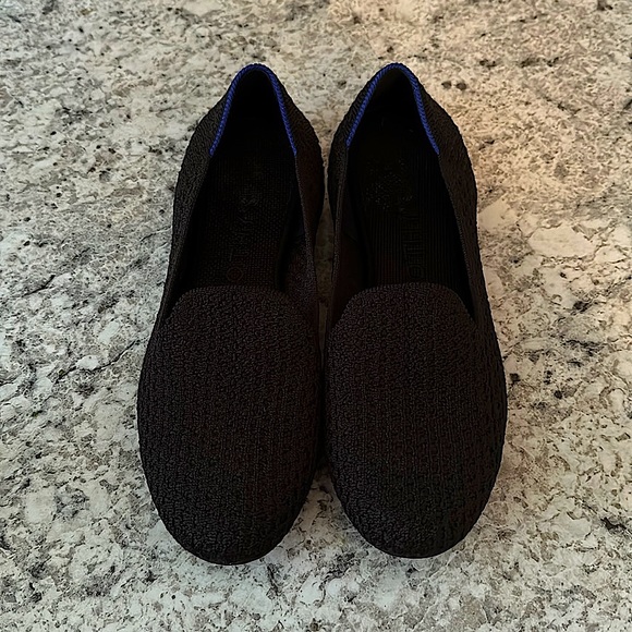 Like new- worn only a handful of times. Black loafers by Rothy’s. There is a little wear on the insert (they have been washed & are machine washable!!) but no other flaws.