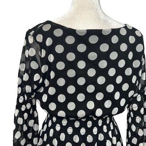 Like New BCBGMaxAria Black & White Polka Dot V-Neck Midi Dress Size Medium