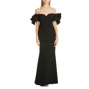 Like New Badgley Mischka Origami Off the Shoulder Gown, Black, Size 2