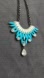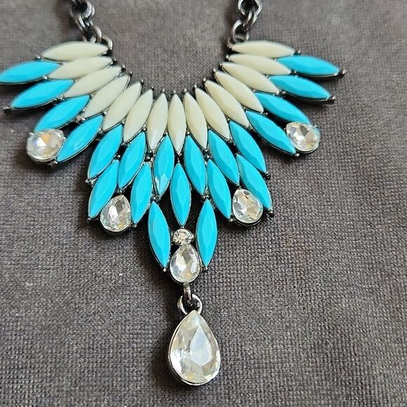 Like New! Blue and Cream Statement Necklace with Fan Pendant