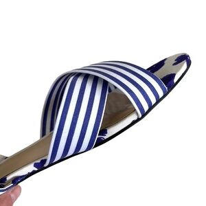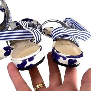 Worn once; Beautiful blue/white textile uppers; wrap around ankle straps; cushioned footbed; smoke free home. e