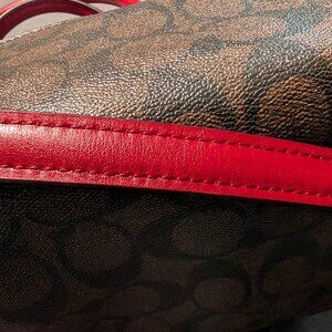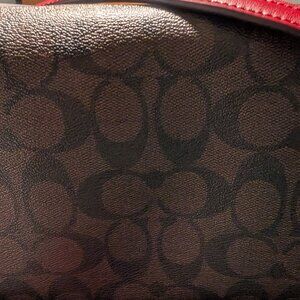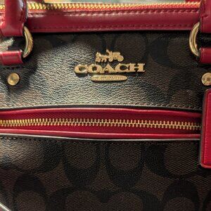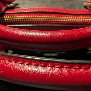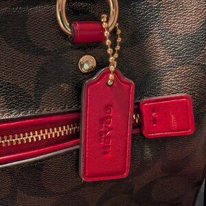 Like New: COACH Rowan Satchel | Khaki Signature & Red Poppy Leather