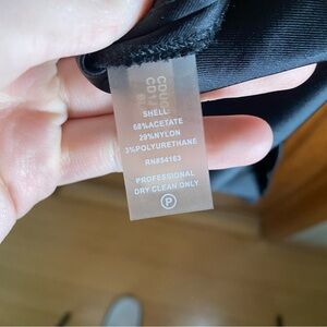 This elegant black dress by Calvin Klein features a stylish floral detail and linear design, perfect for any occasion. Its sleek look offers a flattering fit hitting right above the knee, making it a must-have in your wardrobe!!
