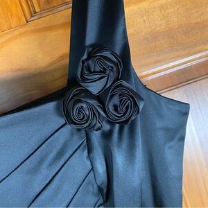 Like New Calvin Klein Black Mini Dress with Three Rose Floral Detail