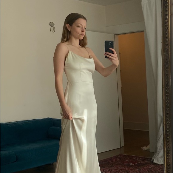 Cleo by Alexandra Grecco is a total dream of a dress. I knew I wanted to get married in an elegant but simple ivory gown that made me feel the most gorgeous I had ever felt... and after months and months of searching, this was it! The gown is incredibly well made with the most luxurious silk fabric that slides through your fingers like water. I felt absolutely stunning all day long, and received so many compliments!