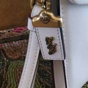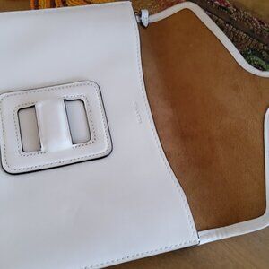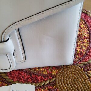 This is a gorgeous extra large wristlet that measures 8 3/4 x 6 x 3/4. This wristlet has a large open back pocket that would hold the largest phone. Inside there are 2 credit card slots. it has the slide tab closure and has a detachable wristlet strap. Of course it has the special 1941 hangtag.