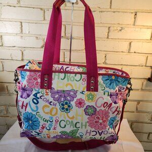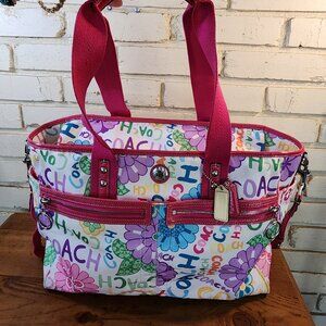 C28 Gorgeous large Coach Nylon Signature Graffiti Daisy Diaper Bag!