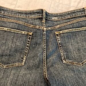 Size 18 Coldwater Creek Jeans. These are 99% cotton, 1% spandex, so they are substantial and somewhat rigid denim, but still have a little give in them from the spandex. They are a mid rise jean (see photos reflecting rise, inseam, waist) with a 32” inseam. The style of them is meant to be “destroyed”/ antiqued. These were worn maybe a few times before they no longer fit, and while I’ve searched them over, I can’t find any pilling or signs of wear. The cut is straight to a slightly narrow boot cut.