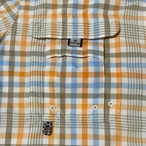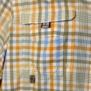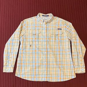 Like-new Columbia Performance Fishing Gear (PFG) plaid long sleeve button-down shirt built for comfort and functionality on and off the water. Lightweight, breathable, and quick-drying with back venting and utility features—perfect for fishing, hiking, or everyday outdoor style.