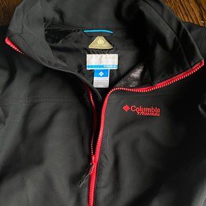 Like New. Columbia Youth Bugaboo Interchange Titanium/Omni-Heat Layer Jacket, Black w Red. Size 14/16. 100% polyester. Omni-heat breathable warming technology regulates your w silver dots that reflect & retain warmth your body generates. Initially sold as a 3-in-1 jacket, but this is the inner layer meant to be worn alone or as a layer. Zip up closure w 2 outer zip & 2 inner slip in pockets. Excellent used condition. Approx measurements laying flat 20" pit to pit, 22” length 23" sleeve length.