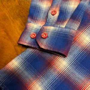 Like New Dixxon Glory Red, White & Blue Plaid Flannel Shirt