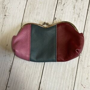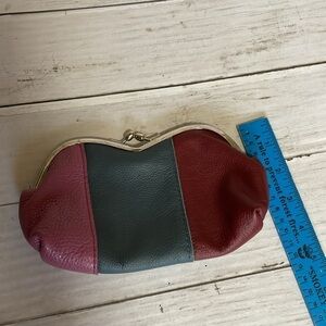 Like New Elophina Tricolor Leather Kiss Lock Make Up Pouch