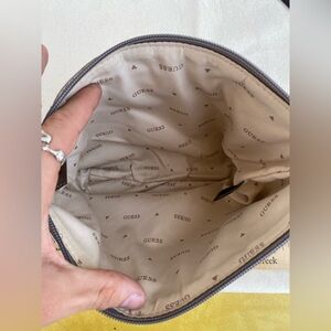 Stylish Guess shoulder bag with a shimmering silvery bronze finish. Perfect for adding a touch of elegance or spice to any outfit. Great for date nite or or casual everyday wear. Lightweight and fits all the essentials! In good, very lightly used condition with tons of life left. No apparent flaws on interior or exterior.