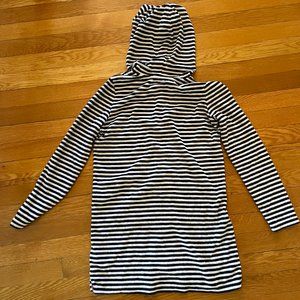 Gymboree L 10-12 horizontal striped Navy and White hooded zip up cover up. Towel like feel