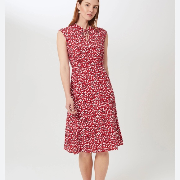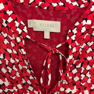 Like new HOBBS London red, white and black Lilia patterned midi dress