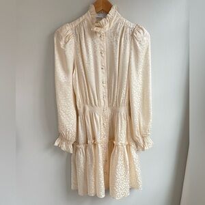 Hunter Bell Joplin Long Sleeve Dress in gorg "Powder" Ivory Silk Jacquard. Size women's Small. Orig. $435. Perfect condition (tiny pin-sized dot on one shoulder, pictured, which may come out with next dry cleaning).