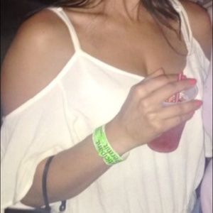 Like new worn 1x only. Ruffle Ivory off the shoulder small romper.