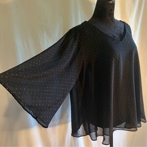 Like New Jennifer Lopez Sheer Black Blouse With Gold Polka Dots Women’s Size XL