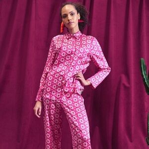 Indulge in a dreamy escape with our Carmelita Print Silk Pyjama Shirt.