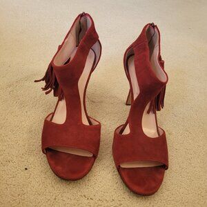Like New Kate Spade Inga Red Suede Fringe Stiletto Sandals