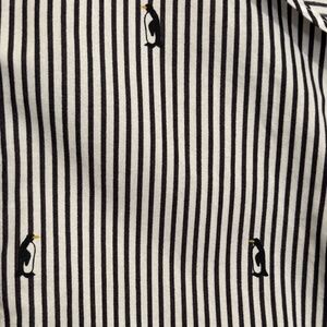 Features super cute penguin print, feminine ruffle details at sleeves and body and hi-low hem