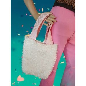 For sale is a *Like New* Barbiecore White and Pink Synthetic Fuzzy Soft Purse