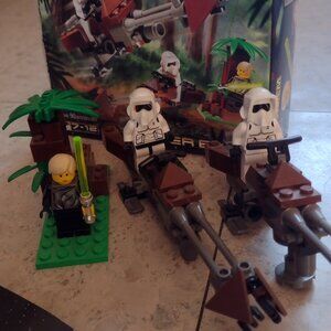 Like new set of Lego Star Wars with two Speeder Bikes with two riders and Luke Skywalker with his lightsaber under a tree. The detail in this set are amazing. This set has all its pieces and they are like new, there are no cracks, broken or discolored pieces. Another classic Star Wars set for you to do many variations. This set was put together and has been sitting on a shelf in a closet. Speeder Bikes was released in 1999. This is one of seven Star Wars Sets in our closet. Relive the high-speed chases of the Star Wars galaxy with the Speeder Bikes! Released in 1999, this vintage LEGO set features three minifigures. The iconic speeders are perfect for display or play, allowing fans to recreate classic scenes from the original trilogy. With its compact size and nostalgic charm, this set is a must-have for any Star Wars enthusiast looking to add a piece of history to their collection. Open up the 16-page instruction booklet and start building today!