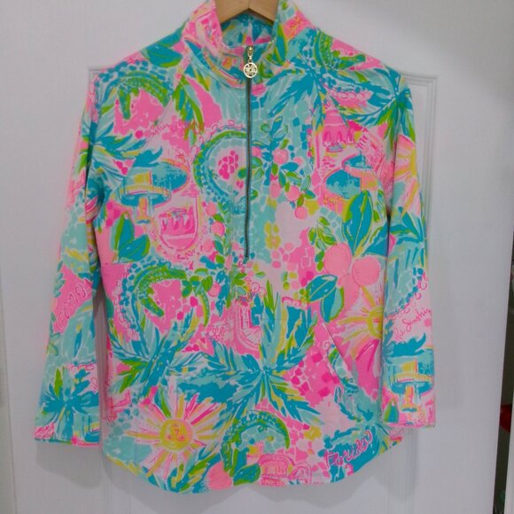 Like New Lilly Pulitzer The Skipper Loves Florida Popever Half-Zip Top S UPF 50